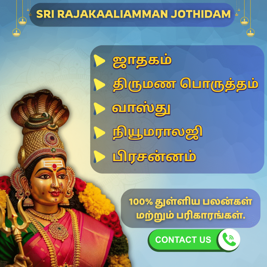 வணக்கம் ஆன்மீக நண்பர்களே ஸ்ரீ ராஜகாளியம்மன் ஜோதிட நிலையத்துக்கு உங்களை அன்புடன் வரவேற்கிறோம்.